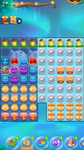 关卡布局分析能力直接影响得分效率。开局前需观察整体结构,识别传送带、翻转石板等动态元素的运作规律。金豆荚关卡需利用传送带转移目标,而雪块关卡可借助雪人自动清除特性。时间限制关卡应侧重快速生成直线特效,步数限制关卡则需精确计算每步收益。隐藏关卡和特殊模式往往要求针对性策略,如利用彩虹糖消除全屏同色动物来应对颜色限制条件。