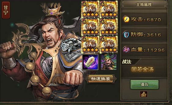 曹操开局直接放战法清幻影,甘宁进场后立刻开战法打爆发,赵云等敌方残血时再出手收割。关羽的觉醒技能是翻盘关键,尽量留到敌方剩三排左右时触发。如果遇到蛮王精英军,可以用貂蝉或司马懿辅助控场,貂蝉拉战法或司马懿反技能都能有效拖延时间。副本中多利用单挑机制,残血武将及时撤退补兵,避免浪费兵力。