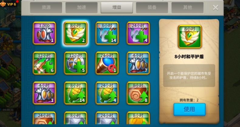和平护盾分为绿、蓝、紫、橙四种品质,持续时间不同,品质越高保护时间越长。你可以在VIP商店用宝石购买,或者通过联盟商店用联盟积分兑换。联盟积分可以通过科技捐献、联盟帮助或建造建筑获得。如果你的联盟商店没有和平护盾,可以联系盟主或官员补充库存。完成特定任务或参与活动也有机会获得护盾道具,记得多关注游戏内的任务和活动提示。