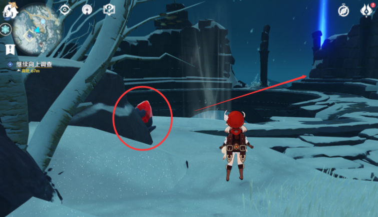有些地方的两块坚冰共用同一块深赤之石,比如忍冬之树附近,打完石头后可以先后解锁两个冰块。如果遇到需要爬山的点位,比如眠龙谷的骨架顶部,建议带上弓箭手角色,远程攻击能节省时间。深赤之石被击碎后会刷新,但等待时间较长,最好一次性搞定。