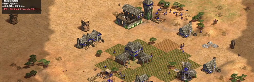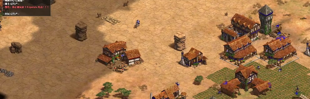 上封建后第一时间建造马厩,优先生产3-4匹肉马,同时补足农田数量至15块左右。肉马的主要任务是骚扰敌方伐木或采矿的农民,尽量避开敌方城镇中心的射程。如果对手出长枪兵防守,记得拉扯肉马避免硬拼,利用机动性绕后偷袭落单农民。骚扰的同时家里不能停农民生产,确保经济不被拖垮。