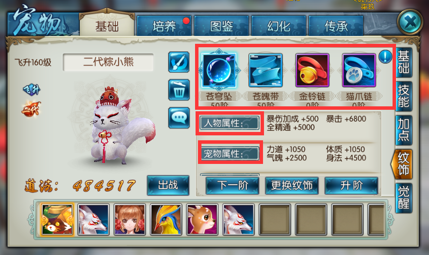 二代宠物培养是长期过程,需要合理规划资源投入。蓝色纹饰建议优先升到20-30阶,紫色纹饰根据非绑定元宝储备量力而行。觉醒技升阶成本较高,初期可先提升至5阶左右。每周参与帮派驱凶辟邪、天墟九宫等活动可稳定获取培养材料。二代宠物之间可通过传承系统转移属性,因此不必追求一次获得完美宠物,可先培养过渡用二代宠物,待获得更优质二代宠物后再进行传承。