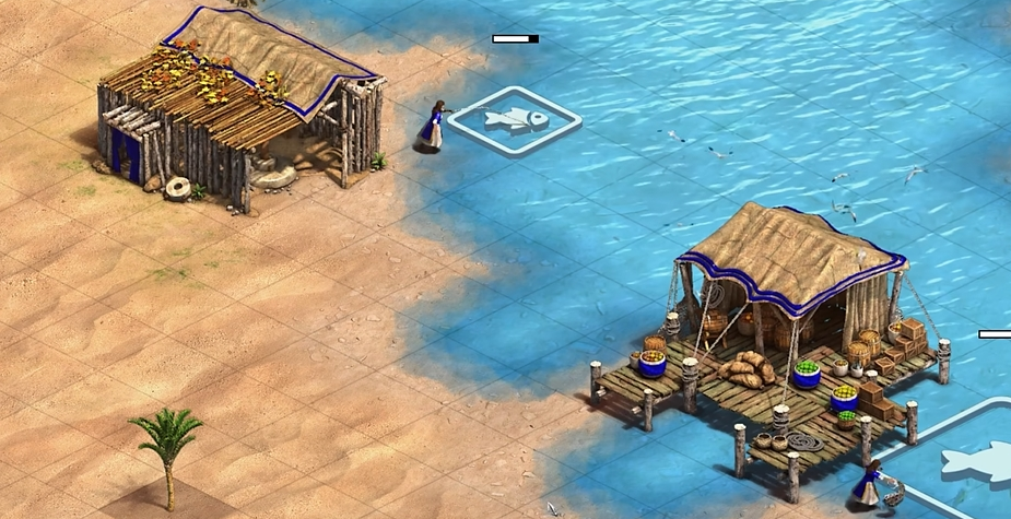 养鱼场是一种重要的食物来源建筑,由渔船在浅海或湖泊区域建造。每个养鱼场初始提供715点食物,渔船会持续采集直至资源耗尽。与农田不同,养鱼场不需要农民操作,但需要消耗木材重建,因此在资源紧张时需要合理规划建造时机和位置。养鱼场的核心作用是为海上或近海文明提供稳定的食物补给,尤其在陆地资源不足或地图水域广阔时,能有效支撑经济与军事发展。