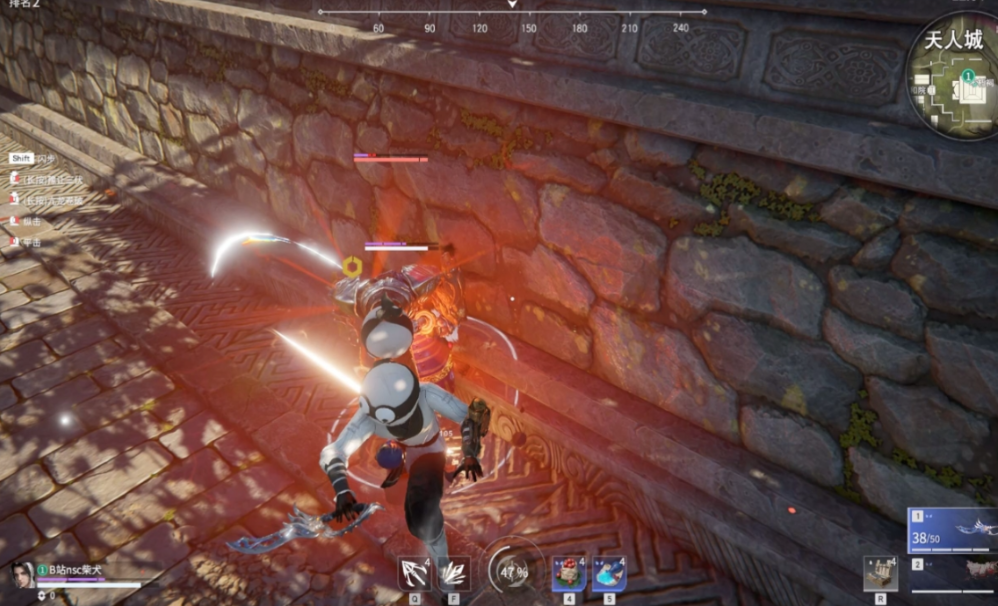 面对长枪等攻击范围较大的武器时,调整角色面向至关重要。被长枪普攻黏住时,若背对敌人逃跑并向前长按shift,只会触发无无敌效果的短滑步。正确做法是通过wasd调整角色面向敌人,再向后方或斜后方长按shift,消耗一段精力完成无敌闪避并进入奔跑状态。另一种方法是先按住左右键蓄力再长按shift,蓄力状态下任何方向的shift都会附带无敌效果。