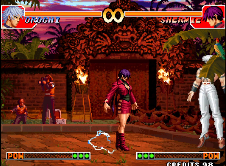 新手容易搓招失误,建议先开练习模式慢动作输入。比如阳光普照的↓←要干脆,摇杆回中后再按键。电脑键盘玩家可以把轻拳设成Y,重拳设成U,简化操作。隐藏版大蛇的灵力光柱(→↓←+任意键)能控制四个方向,但需要精准输入,多练才能稳定触发。