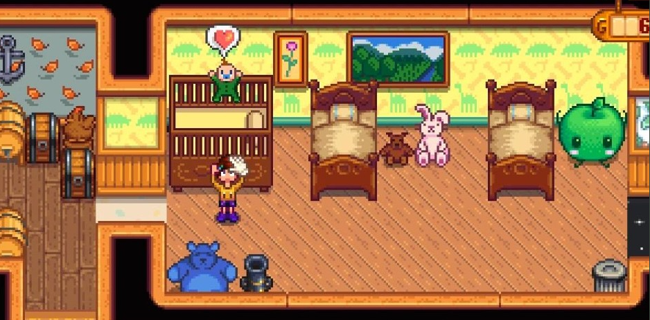 婚后妻子的日常工作包括添加动物草料、浇水、抚摸动物以及修理围栏。这些行为是自动触发的,玩家无法直接指挥具体任务。配偶通常在早晨固定时间站在农场房屋门口,对话会提示当天完成的家务内容。需若农场已实现自动化(如洒水器、自动喂食器),配偶的协助会相应减少,但修理围栏和动物互动仍会持续。配偶偶尔会在厨房制作早餐,消耗冰箱食材随机提供恢复类食物,若物品栏已满则无法接收。