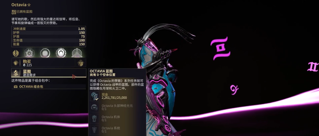 Octavia的战甲蓝图需要通过完成系列任务旧日余音获得。这个任务会带你了解她的背景故事,完成后就能拿到总图。记得在任务过程中留意剧情对话,这样能更好地理解这位战甲的特点。她的机体蓝图则藏在月球的音乐密室里,这个密室需要解谜才能进入,解谜方式是通过踩踏板演奏正确的旋律,网上有很多教程可以参考。
