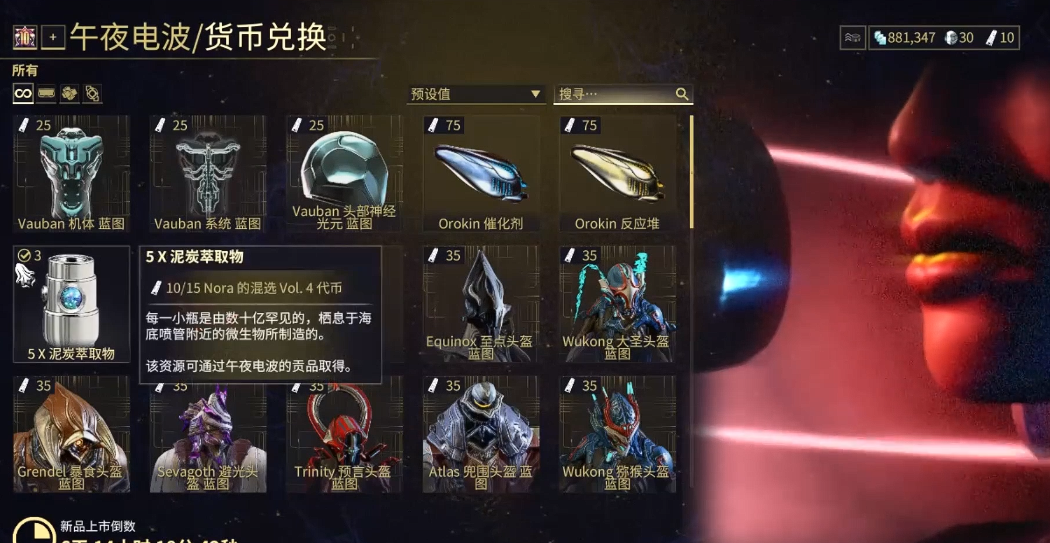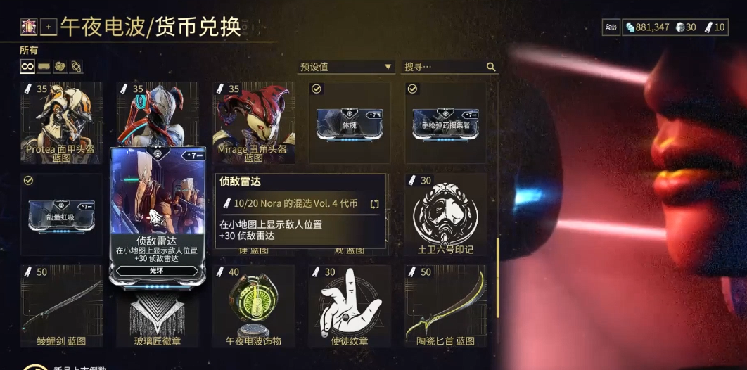 午夜电波商店的兑换优先级需根据实用性和获取难度综合考量。MOD类推荐优先兑换战利品探测器、能量虹吸、电磁脉冲场等常用功能卡,这些MOD能显著提升战甲或武器的实战表现。武器专属MOD如猛烈发狂、凝固汽油弹等则需结合自身装备库选择,若已持有对应武器则值得投入。杂项类中泥炭萃取物作为稀有资源始终是硬通货,而等离子长剑、恶狼战锤等武器蓝图可根据收集需求灵活兑换。外观配件如土星六号披饰、使徒纹章等属于个性化选择,建议在核心资源充足后考虑。