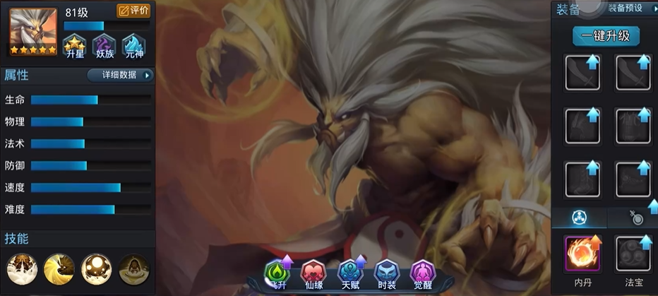 物理输出层面,金翅大鹏的破防机制在当前版本占据优势,配合火羽天赋可实现70%破防覆盖率,对高防御目标具有压制力。青狮精在双修炼经文加持下,与金翅大鹏形成互补联动。需注意物理系英雄更依赖装备支持,建议在拥有基础攻速装后再重点投入,避免因属性不足影响实战表现。