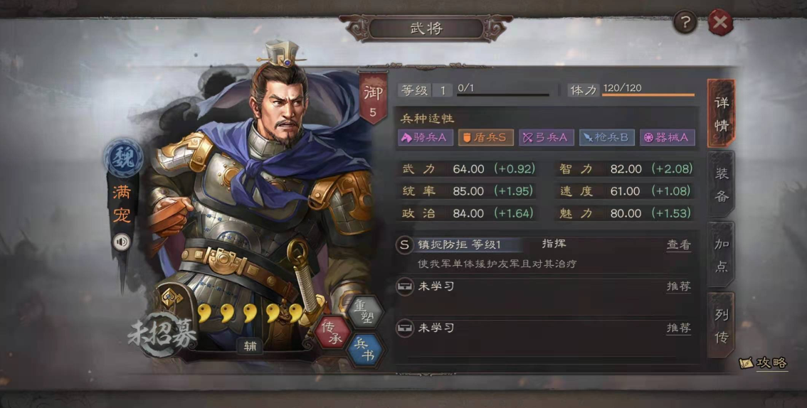 许褚作为高爆发单体输出武将,自带战法虎痴能锁定敌方单体并提升33%伤害,配合多段攻击战法可快速秒人。他的武力成长高达2.65,适合担任主攻手,但智力较低需防谋略伤害,盾枪双S兵种适应性让阵容搭配更灵活。装备调速是发挥他优势的关键,建议优先堆武力与速度属性。