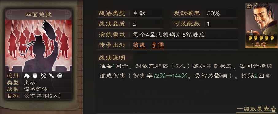 战法的选择是决定这个队伍强度的另一个核心。对于程昱来说,他的自带战法需要敌人身上有负面状态才能打出额外伤害,所以给他搭配的战法最好能提供这种效果。比如四面楚歌、沉沙决水这类战法就不错,既能打伤害又能上负面状态。如果没有这些高级战法,用机略纵横、妖术等A级战法过渡也行。给乐进选战法,则要考虑到他自带战法发动后会有虚弱状态,所以可以搭配一些能提供控制和辅助效果的技能,比如挫志怒袭、御敌屏障,或者像勇者得前、文武双全这样进一步提升他输出的战法。为第三个辅助武将选战法则要偏重队伍的保护,比如带暂避其锋、刮骨疗毒、唇枪舌战、八门金锁阵这类减伤和治疗技能。