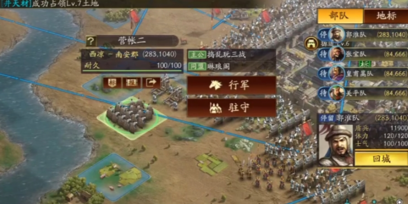还有一些细节能提升你的成功率。你的几支部队最好不要全部挤在同一个格子上,稍微拉开一点距离,可以避免被敌人的范围性战法或者技能一锅端掉。规划行军路线时也要留心,别让部队尤其是器械队走到别人的地盘上,或者和敌方行军的路线撞上,不然就会被迫开战。打下一个据点或者城池后,事情还没完,要赶紧派人去驻守,建立防线,同时抓紧时间修复城防,把占领的土地真正巩固下来,这样才能为下一次的多部队行动打下更好的基础。