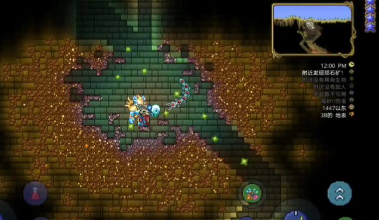 在你兴冲冲地跑去挖矿之前,有个非常重要的安全警告必须了解。陨石矿区和普通的石头可不一样,它自带一种危险的燃烧效果。如果你直接站在陨石矿石块上,或者用身体去接触它们,你会立刻受到持续的火焰伤害,身上还会出现着火的减益效果,掉血速度很快。绝对不能直接踩上去开采。为了避免这个伤害,你需要提前做好防护措施,比如装备黑曜石骷髅头、黑曜石盾牌这类免疫火焰伤害的饰品,或者提前喝下一瓶黑曜石皮肤药水,这样就能在短时间内完全无视陨石的高温灼烧了。