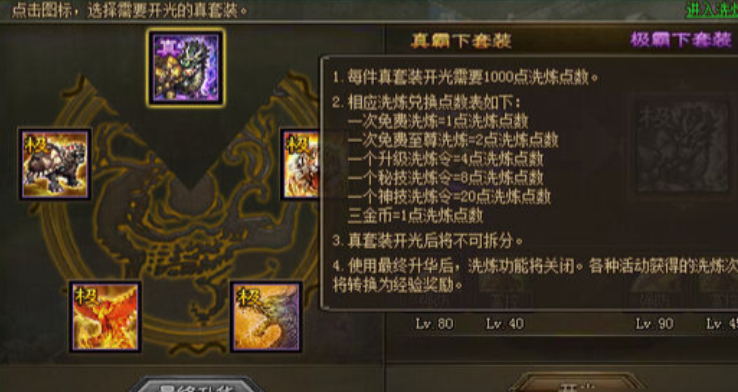 如果你已经拥有了霸下套装,还可以进一步追求更高级的真霸下套装,这需要你先集齐玄武套装和霸下套装作为基础,再等角色升到105级时,去点券商城花更多点券购买真霸下套装的图纸。真霸下套装的属性更加强大,能大幅提升角色的攻击、防御和血量加成。