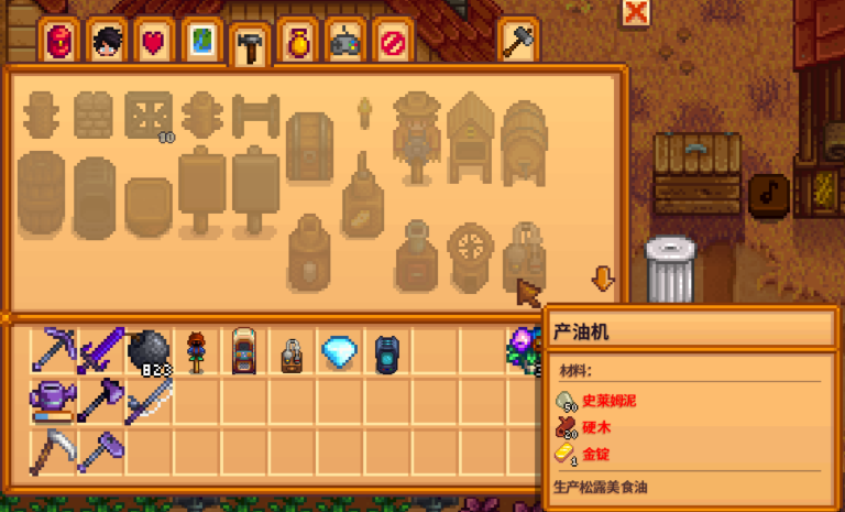 用上黄油搅拌器,首先你得把它做出来或者拿到手。关于怎么获取,有的资料提到需要将耕种技能提升到一定等级才能解锁配方。制作它需要一些特定材料,比如史莱姆泥和硬木,这些材料你得在矿洞里打史莱姆或者去秘密森林砍那种大木桩才能收集到。准备好材料后,在工作台那里选择制作就行。造好之后,你可以把它放在农场的任何地方,比如畜棚旁边就很方便,这样收了牛奶就能马上加工。这个东西一旦放好,它是不会坏的,你可以一直用下去。准备好了机器,下一步就是往里放原料了。
