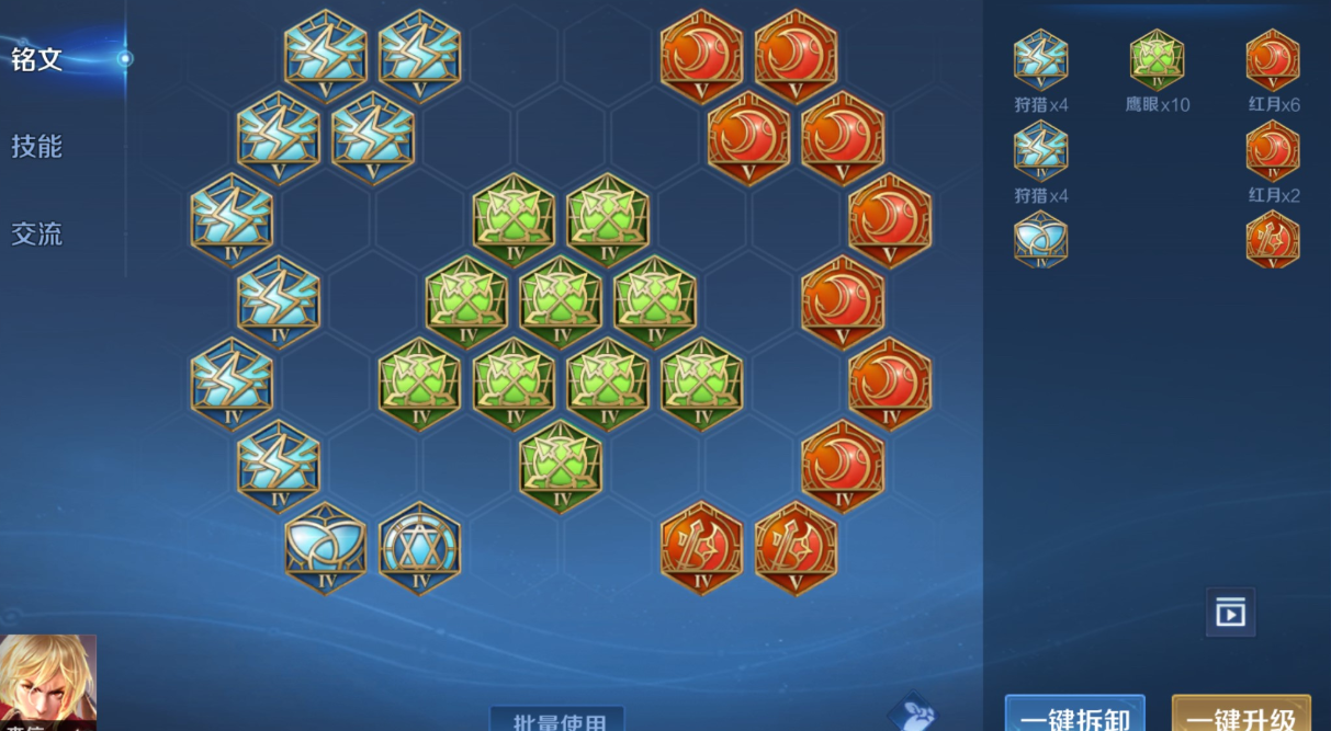 铭文配置推荐使用10个红月、10个鹰眼和5个夺萃5个狩猎的组合,红月提供攻速与暴击率,鹰眼强化物理穿透,夺萃增强吸血效果,狩猎提升移速与攻速,这套铭文使暗信在四级后即可形成强势期,充分利用一技能的加速与免控进行野区入侵或兵线推进;若对线压力较大,可适当调整狩猎为调和以增加前期生存能力,铭文搭配需注重攻速阈值与额外攻击力的协同,以发挥暗信被动中攻速与物攻的转化效益。