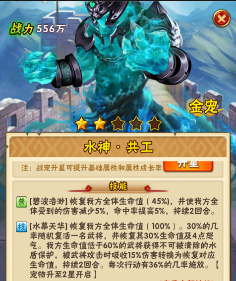 对于蜀国玩家来说,攻击型金宠如火神祝融是热门选择,它能提供全体伤害加成和怒气灼烧效果,适合追求快速爆发的阵容。防御型金宠如雷神江天则能提供全体减伤和麻痹控制,增强团队在持久战中的生存能力。辅助型金宠如水神共工具备治疗和复活机制,为阵容注入续航动力,而凶神相柳的减怒效果则能打乱敌方技能循环。根据你的阵容重心,灵活选择这些金宠类型可以最大化战斗效率,并注意金宠与蜀国武将的联动,避免技能覆盖或收益递减。