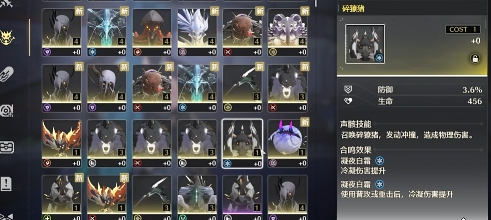声骸的COST结构推荐采用43311配置,即一个COST4、两个COST3和两个COST1声骸,这种分配能最大化负载利用并平衡属性收益。主词条方面,COST4声骸优先选择暴击伤害或暴击率,以优化角色的暴击面板;COST3声骸则以衍射伤害加成为主,必要时可用攻击力加成作为过渡;COST1声骸固定选择攻击力,确保基础输出值稳定。这种结构不仅覆盖了关键伤害属性,还能通过声骸技能提供额外的战斗增益,例如荣光节使能强化重击伤害,与衍射角色的输出模式高度契合。
