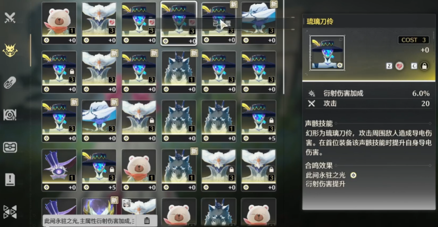 声骸技能的选择应聚焦于提供衍射伤害增益或额外输出效果的选项,例如琉璃刀伶能召唤单位造成多段衍射伤害,并附带重击加成,完美契合衍射主C的输出模式。在实际应用中,声骸技能的冷却时间和触发条件需要与角色技能循环同步,以最大化伤害覆盖;声骸的装配位置会影响技能释放顺序,建议将增益类声骸置于主声骸位,确保战斗开局即可激活关键效果。通过声骸技能与角色机制的联动,可以进一步放大衍射伤害的优势。