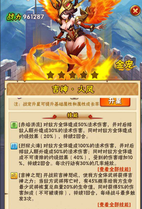 玩吴国的朋友就别犹豫了,直接盯着凌波凤凰就行。吴国阵容很多都是玩灼烧流的,像周瑜、陆逊这些武将放火一流。吉神火凤的技能正好是群体灼烧,而且它附加的灼烧效果还无法被对手驱散,配合你的火攻武将,那火烧起来叫一个痛快,伤害持续不断。虽然培养起来可能比魔龙费点劲,但为了配合你的核心阵容,这笔投资绝对是值得的。