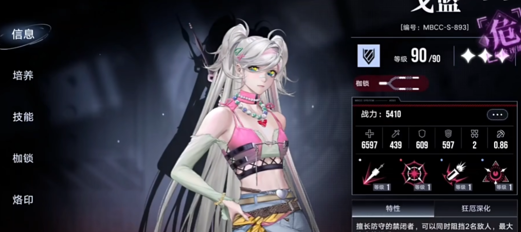 戈蓝是一名危级禁闭者,职业为坚韧特化,她的核心价值在于其独特的破绽附加能力,这让她成为了以毕安卡为主C的破绽队中的关键成员。破绽队是一套培养成本相对较低、使用省心且就业面广的体系,其输出原理是队友不断为敌人附加和移除破绽状态,从而触发毕安卡的专属烙印造成高额伤害。戈蓝的作用就是高效且多次地为敌人添加破绽,这对于需要长时间作战、多次破核的关卡,例如深井的某些层数或公会战,表现尤为关键,她的这种持续提供破绽的能力是其他一些角色难以替代的。