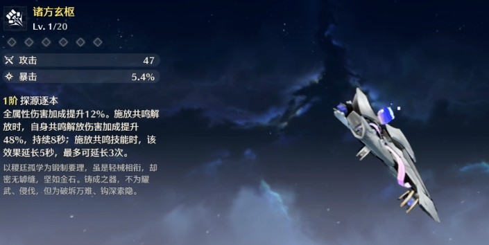 相里要的专属武器诸方玄枢无疑是最优解。这把五星专武具有高白值与高暴击率的特点,其武器技能能显著提升全属性伤害及共鸣解放伤害,与相里要的技能循环完美契合。根据其输出手法,释放共鸣解放后衔接技能可以延长伤害加成时间,使其核心的万方法则伤害全程享受增益,对角色提升巨大。若资源充足,专武是追求极限输出的首选。