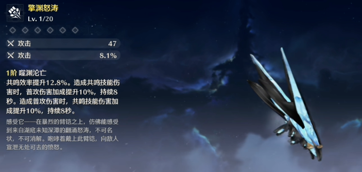 若未能获取专武,常驻五星武器是强力的替代选择。擎渊怒涛作为常驻五星臂铠,虽然其加成的共鸣效率、普攻与共鸣技能伤害不如专武突出,但凭借显著高于四星武器的基础白值,在输出上依然具备很强的竞争力,并能优化循环手感。另一把常驻五星武器停驻之烟也能提供可观的暴击率加成,其被动提升攻速与技能伤害的效果,同样能有效增强相里要的实战表现。这两把武器是专武之外的首选下位替代。
