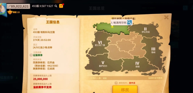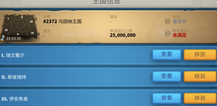 进行迁移的具体操作步骤有明确的界面指引。你首先需要打开世界地图,将其缩小至全局视图,此时在界面右下角会出现一个地球图标。点击该图标后,会进入王国选择页面,你可以在这里浏览并选择想要迁入的目标王国及该王国内的具体区域位置。选定理想的位置后,点击迁城按钮,系统会自动检测你是否符合所有移民条件。若检测通过并确认消耗相应数量的移民令,即可启动迁城。过程完成后,游戏通常会重启,你的城市将出现在目标王国的随机或指定位置。