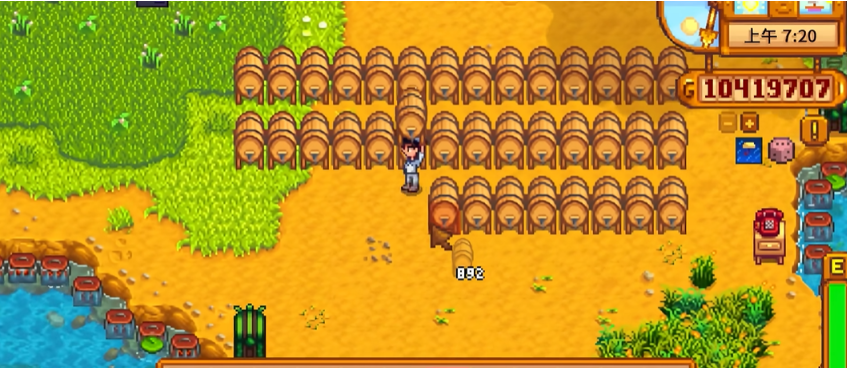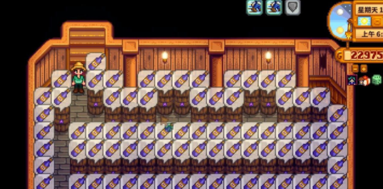 完成原始积累后,游戏重心需转向建立具备规模效应和加工增值的产业体系。耕种技能达到一定等级后,解锁酿酒桶并开始规模化酿酒是收益增长的关键转折点,高价值作物经过酿造后其售价将获得巨大提升。为此需要系统性地规划资源获取,提前种植橡树以采集树脂,并深入矿洞获取制造酿酒桶所必需的金属资源。与此并行的是养殖业的开拓,建造畜棚并饲养动物,通过每日照料提升好感度以获得高品质的副产品,这些产品可直接出售或进行二次加工。此阶段的目标是构建一个不依赖单一收入来源的复合型盈利框架,让农场每日都能产生稳定且可观的收益。