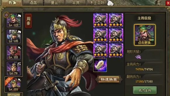楼兰战役中推荐使用喷火车或破甲车,前者能对密集敌军造成持续灼烧,后者可削弱敌方防御。武将周泰若觉醒,配合喷火车能显著提升清兵效率;而吕布觉醒后凭借战车可实现无限战法循环,适合应对持久战。战车强化需优先提升陨铁储备,确保关键部件的锻造等级与战场需求匹配。