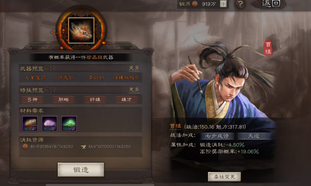 后期阶段铜币作为基础货币的重要性不降反升。虽然前期主要用于战法升级和武将招募,但后期铜币的用途更加多元化,涉及装备锻造、兵书开启、资源补充等多个核心玩法。合理规划铜币的使用方向,能够显著提升武将培养效率和战场表现。