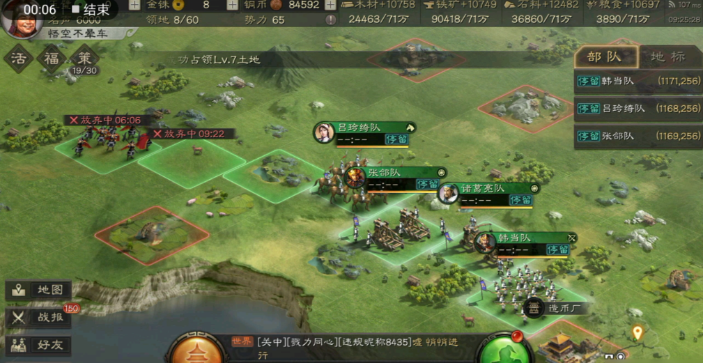 翻地的另一作用是为后续军事行动创造便利条件。由于侠客军无需连接地即可直接攻击资源地,翻地能有效清除敌方关键地块,破坏对手的资源链或防御布局。在进攻敌方主城或分城前,先翻掉其周边的高等级资源地,可削弱对手的防御能力或资源补给。翻地还能阻断敌方援军路线,迫使对手重新铺路,从而延缓其行动节奏。