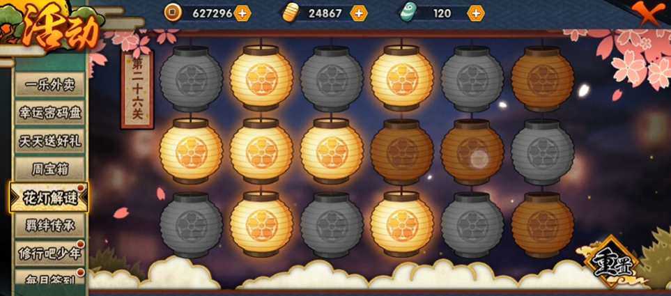 理解花灯解谜的基本机制是通关的前提。游戏中的花灯存在明暗两种状态,点击任意灯笼会反转其自身及相邻四个灯笼的状态,这种变化呈现十字架形状。第26关的解法需要按照既定顺序操作,确保每次点击都能有效改变关键灯笼的状态,最终实现全亮目标。部分玩家可能在初始尝试时感到困难,但只要严格遵循步骤就能顺利过关。