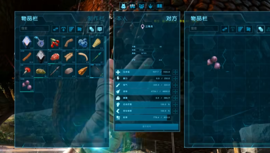三角龙属于草食性恐龙,主要食用各类浆果,其中紫色浆果是驯服效率最高的选择。食肉牛龙蛋制作的饲料能够大幅提升驯服速度,但前期获取难度较高。黑色浆果则用于维持眩晕值,白色浆果可强制降低饱食度加速驯服进程。
