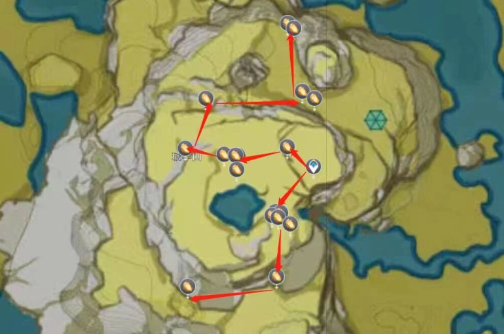 渌华池与地中之盐区域同样值得关注。渌华池西侧传送点附近的水田和遗迹内分布着6个石珀,需完成世界任务渌华景画才能进入遗迹内部。地中之盐需先解锁钟离传说任务,洞窟入口左右两侧各有3个石珀。孤云阁虽然数量较少(约5个),但集中分布在传送点附近,适合快速补充缺口。