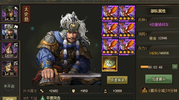 110级是一个重要的分水岭阶段,突破这一等级需要合理规划资源分配与战术搭配。首先需要确保武将等级与装备达到基础要求,兵器等级建议提升至100宝石配置以攻击和防御