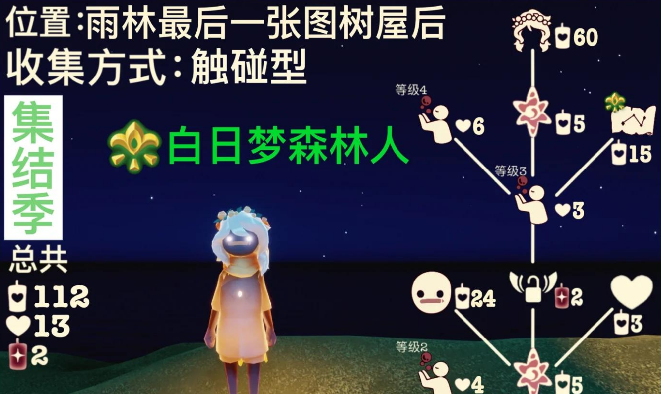 获得花环发型,需要在重组季找到空想护林先祖,解锁季卡后花费21根季节蜡烛兑换。这位先祖藏在雨林地图的水母图附近,具体位置是进入水母图后往右飞,找到有烛火的树洞木屋,先祖就在木屋左侧。找到先祖后,需要先收集他的记忆才能解锁兑换树。花环发型是季节限定物品,如果错过了重组季,就只能等这位先祖复刻时用普通蜡烛兑换。复刻时间不固定,需要多关注游戏公告。