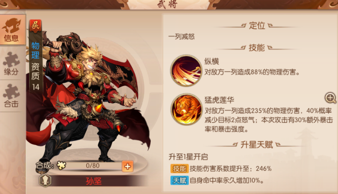 吴国一金阵容的核心思路是围绕小乔展开,她作为金将中的核心辅助,能为队伍提供怒气恢复和灼烧增伤效果。搭配孙坚和吕蒙这两位红将,形成前排压血线后排收割的战术体系。孙坚的横排输出和概率减怒能有效压制对手,吕蒙则负责锁定残血目标进行补刀。这种组合在前期推图和竞技场中表现稳定,尤其适合平民玩家慢慢培养。