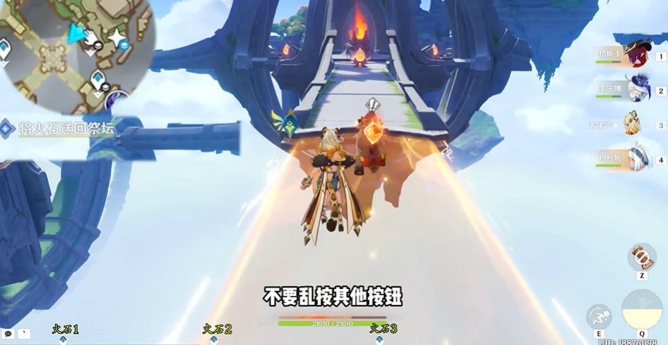 有些圆形祭坛的解密需要用到元素互动。比如眠龙谷的祭坛,开启后会触发机关并启动三个机器人,击败它们后地面会塌陷露出地宫。地宫里的冰晶需要用红色石头附带的Buff攻击才能破坏,而红石头数量有限,记得优先找齐再行动。眠龙谷祭坛的仙灵会提示冰柱点亮顺序,按顺序操作能节省不少时间。
