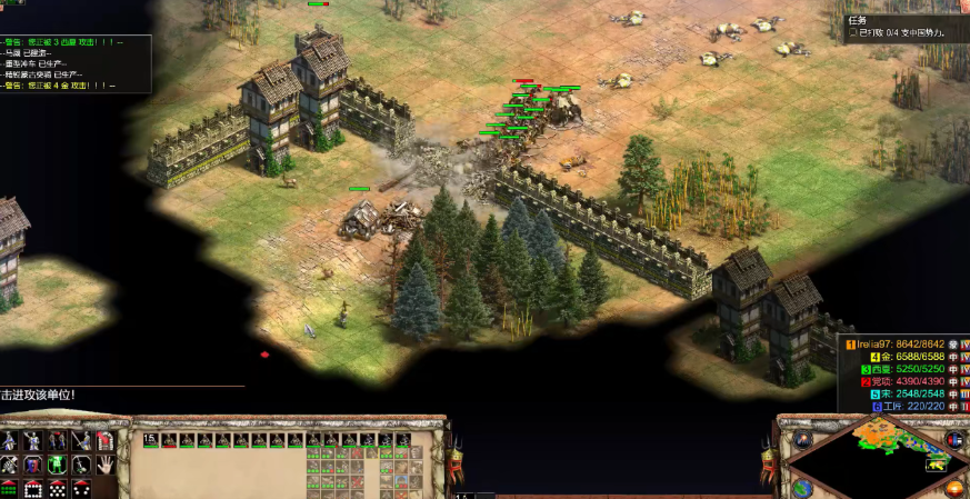 城堡时代是蒙古的强势期,轻骑兵血量提升30%让它们成为优秀的骚扰单位。这时候咱们有两种选择:要么继续爆马弓配合攻城武器压制,要么转骆驼+骑士混编。记得在敌人资源点附近建城堡出突骑,这些骑射手对攻城武器有加成,能有效克制冲车。攻城武器厂要早点建,蒙古的攻城器移动速度快50%这个特性千万别浪费。