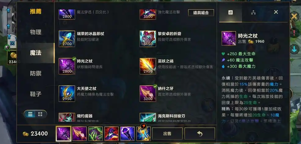 中期装备的选择需要结合对手阵容灵活调整。如果对面脆皮多,可以优先补出穿甲或法穿装备,比如幽梦或法穿棒,这样能最大化咱们的秒人能力。如果对面坦克比较肉,黑切或时光之杖是不错的选择,它们能有效削减敌人的防御属性。保命装备比如复活甲或女妖面纱也可以考虑,尤其是当对面控制多或者爆发高的时候,这些装备能让咱们有更多操作空间。