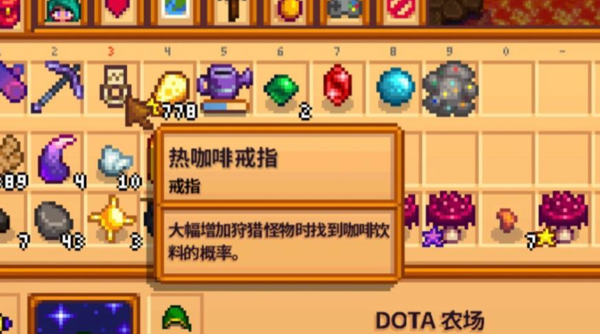 钻石还能用来制作一些高级装备,比如热咖啡戒指。这个戒指需要5个铁锭、5个金锭和1个钻石,效果是在受到伤害时有概率生成护盾,对于喜欢下矿打架的玩家来说非常实用。布告栏的求助任务偶尔也会需要钻石,完成这些任务能拿到金币和友谊点数奖励,算是额外的小福利。