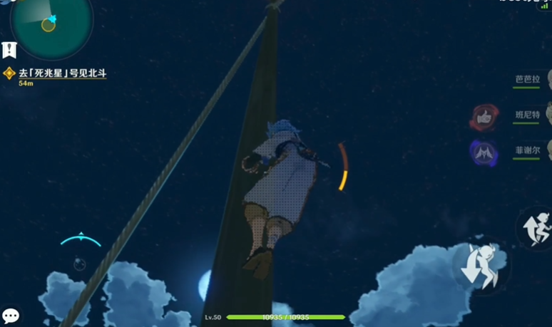 爬到船帆顶部,首先需要找到合适的攀爬点。通常船帆旁边会有桅杆或者绳索可以攀爬,靠近后按住攀爬键就能开始往上爬。注意体力条消耗,如果体力不足可以提前吃一些恢复体力