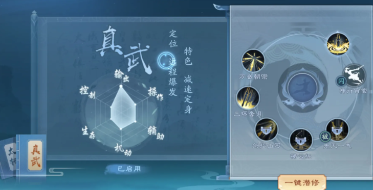 真武流派在PVP环境中表现突出,其技能组合能有效限制对手位移,配合高爆发剑气技快速终结战斗。该流派对走位和技能命中率要求较高,需精准把握控制链衔接时机。太极流派在PVE和团队战中更具优势,九宫八卦阵提供的范围增益与减伤效果能显著提升队伍容错率,纯阳无极功等技能可兼顾输出与团队辅助功能。