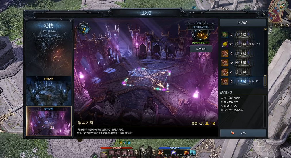 塔内的奖励非常丰厚,尤其是首次通关时能拿到强化材料、技能点和稀有符文。高层的奖励虽然更好,但对装备等级有硬性要求。如果你的装等不够,系统会直接禁止进入下一层。这时候可以先回头刷刷混沌地牢或加迪恩讨伐,提升装备后再来挑战。每周记得清完塔内进度,因为部分奖励是按周刷新的。塔内战斗有时间限制,拖太久会被强制传送出去。建议优先提升输出能力,比如强化武器或搭配爆发刻印。