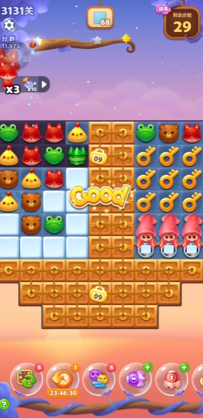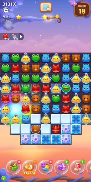 我们需要先看清楚这一关的初始结构,比如哪些地方有障碍物,主要的消除目标分布在哪些区域,有没有可以立刻利用的特效组合。这一关的地图可能会和我们之前遇到的不太一样,中间有些部分可能是镂空的,没有小动物可以掉进去,这就给我们消除造成了一些小小的阻碍。所以开局前花几秒钟看清全貌,知道要先从哪里下手,是成功的第一步。
