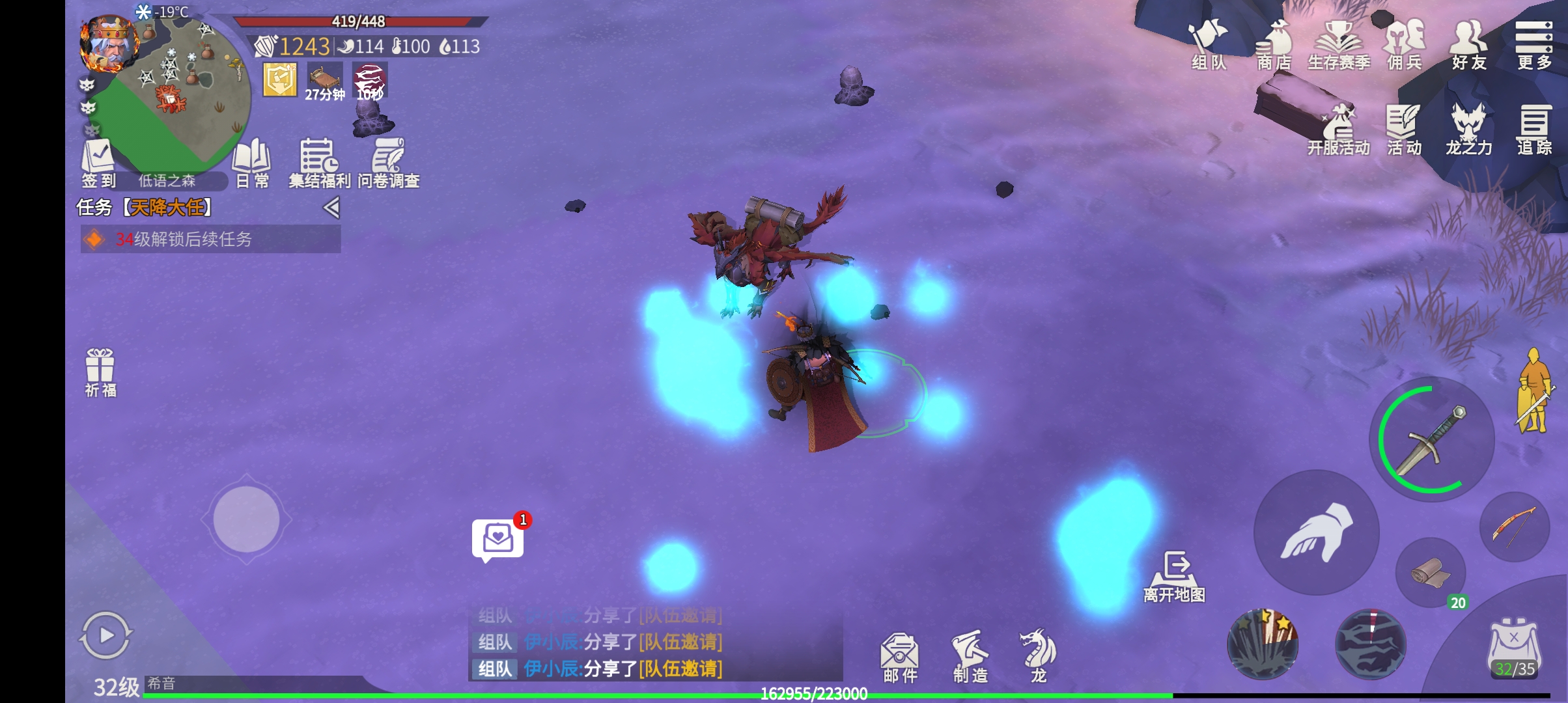 在冲进去开打之前,准备工作可千万不能马虎。你的等级最好达到23级,这是解锁这个副本的基本要求。装备方面,一套厚布套装是保暖的底线,武器推荐用青铜剑或者铁剑,再带上一面木盾增加点容错率。最最要紧的是体温管理,进图前务必确认自己的保暖值超过19点,不然在里面待着体温会一直往下掉,那可就麻烦了。背包里务必塞上几瓶药汤回血,更要带上像南瓜汤这类能直接恢复体温的食物。技能方面,如果拥有暗龙,它的黑暗缠绕技能是个清小怪的神技,记得带上。工具也别落下,想要采集里面的铁杉木和白桦木,一把铁斧是必需的。