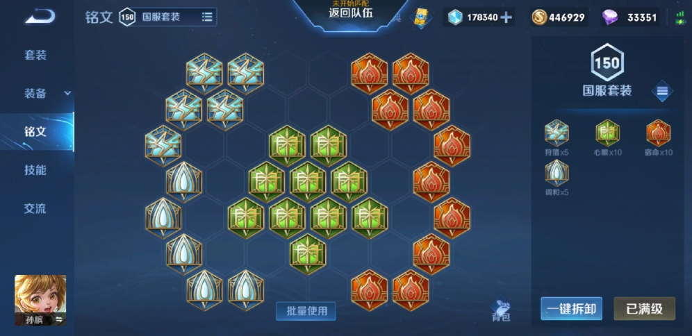 铭文选择应注重生命值、冷却缩减和移动速度技能加点以二技能为主以最大化团队增益。推荐铭文搭配为调和、虚空和宿命,提供最大生命值、冷却缩减、物理防御和每5秒回血效果,这套组合增强孙膑的游走能力和前期生存,避免使用纯法强铭文以维持辅助定位。技能加点方面主升二技能时之波动,副升一技能时空爆弹,有大招点大招,二技能的加速和生命返还在团战中能有效抵消敌方爆发伤害,而一技能和大招的预判释放则用于消耗和控制关键目标。