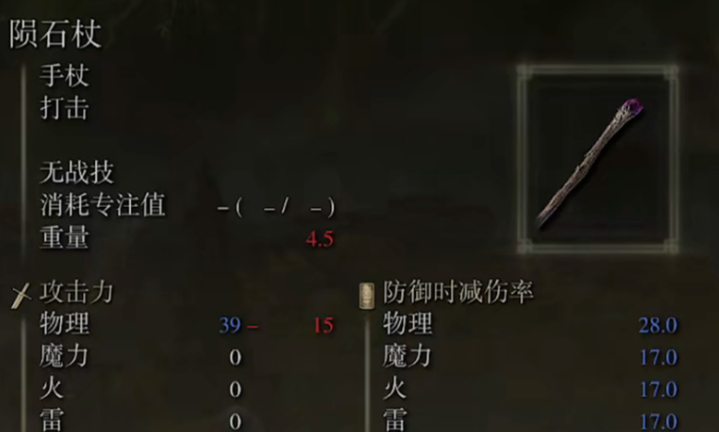 陨石杖因其S级的智力补正和重力魔法加成被视为前期性价比最高的法杖,它位于盖利德地区的贤者镇废墟,可以直接拾取且初期无需强化。获取陨石杖时,在同一区域的废墟中还可拾取到配套的岩石球法术,形成强力的开荒组合。若需补充近战能力,名刀月隐因其优秀的削韧和出血效果也是值得考虑的选择,但获取需要击败盖尔坑道的熔岩土龙,难度较高。
