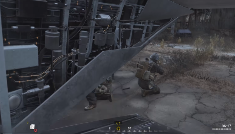 关卡前半段的潜行渗透是成功的基础,必须全程保持低姿态移动并充分利用环境作为掩护。在开阔地带应始终采用匍匐前进的方式,借助草丛、阴影和废墟来隐藏身形;移动过程中要刻意控制节奏,避免发出声响,并密切观察敌人的固定哨位与巡逻队路线,等待其视线移开的短暂间隙再快速通过危险区域。当遇到需要协同解决的目标时,务必与队友同步行动,确保瞬间完成无声击杀,防止触发警报。面对坦克或直升机巡逻等无法对抗的威胁时,唯一的选择是完全静止,依靠伪装和环境融入来躲避侦查。